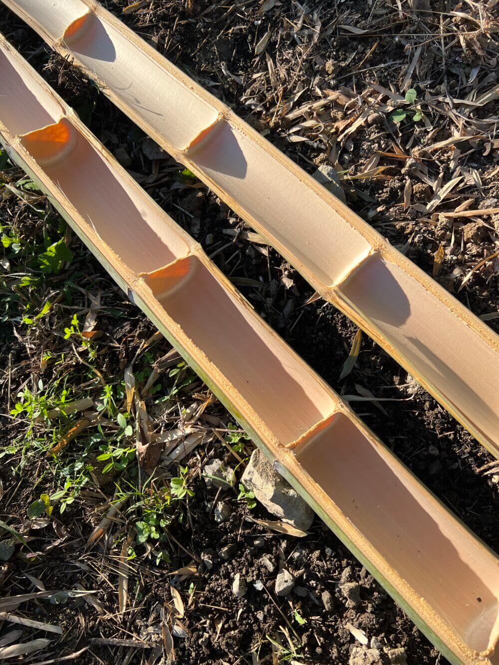 モウソウ竹の伐採をしてたら、竹が折れてこんなの出来た。和食料理の器になりそうだ〜♬