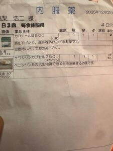 熱が有るので病院行ってきた。そしたらコロナとインフルエンザの罹患チェックをすることになった。鼻にグリグリっと綿棒突っ込まれてしばらく待つと結果がわかった。2つとも陰性。このクスリ2種を飲んで早く治そう。